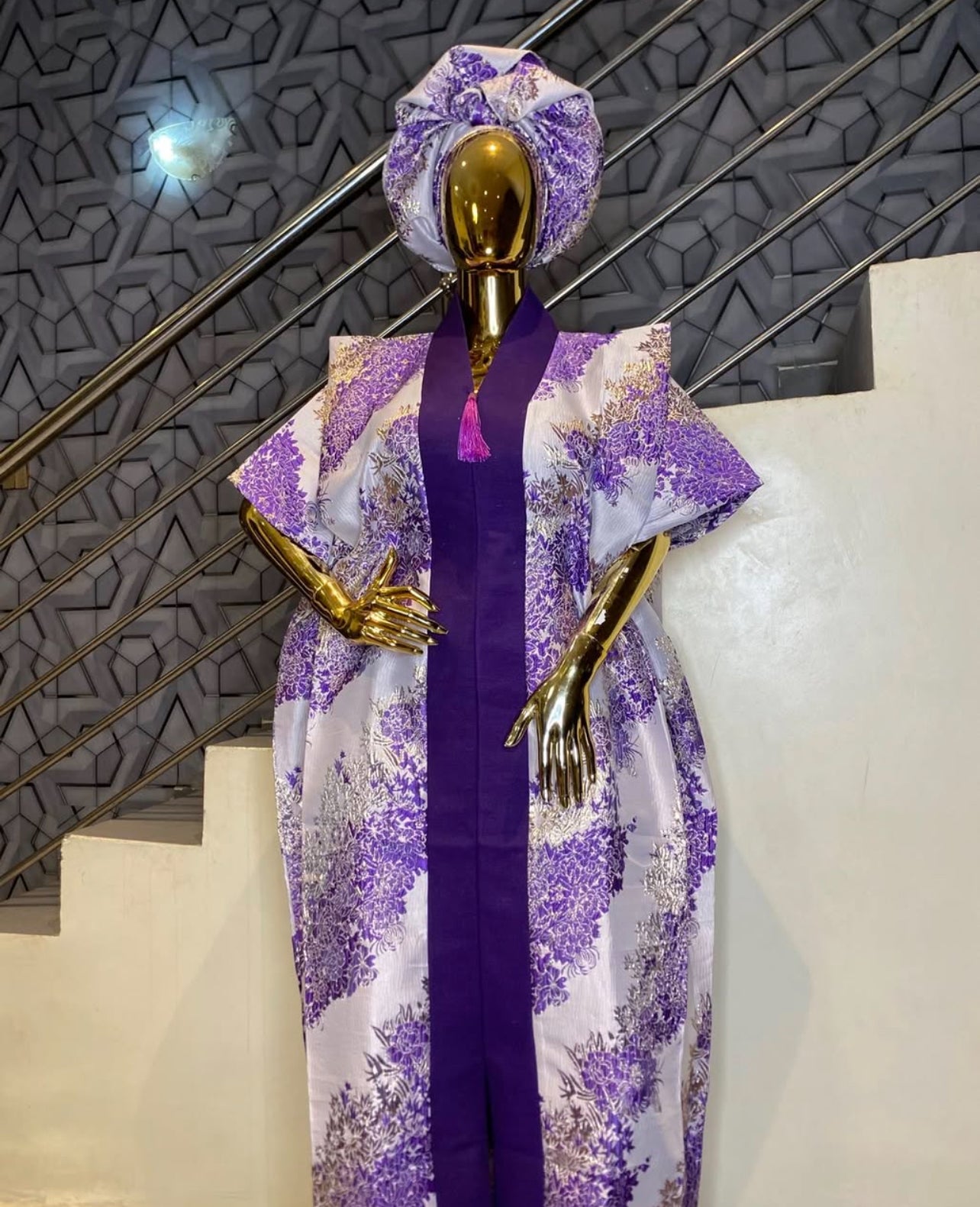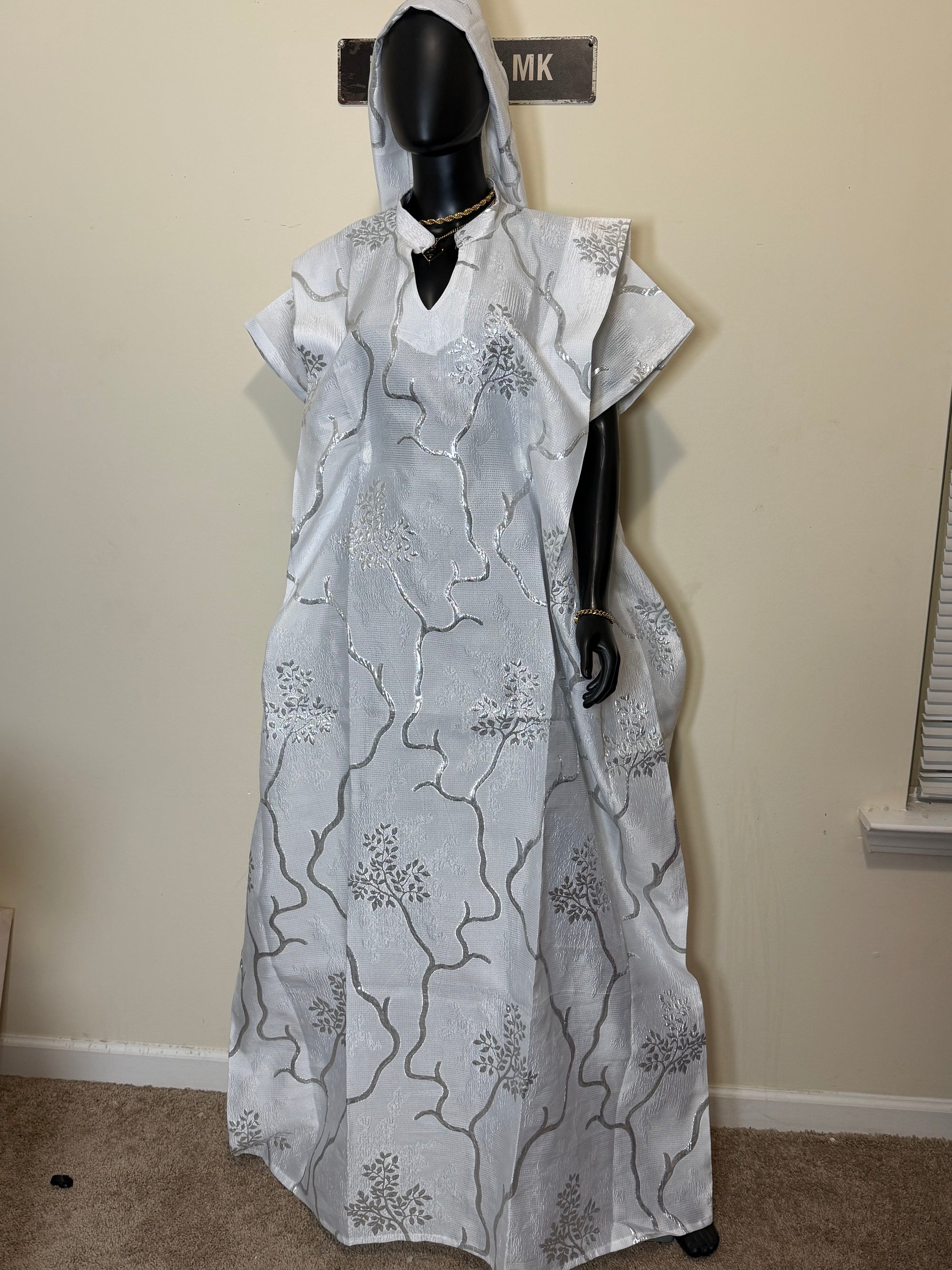 Zari Cotton Asoke Boubou with Head Scarf β 62β Free Size African Dress Zari Cotton Asoke Boubou with Head Scarf β 62β Free Size African Dress
