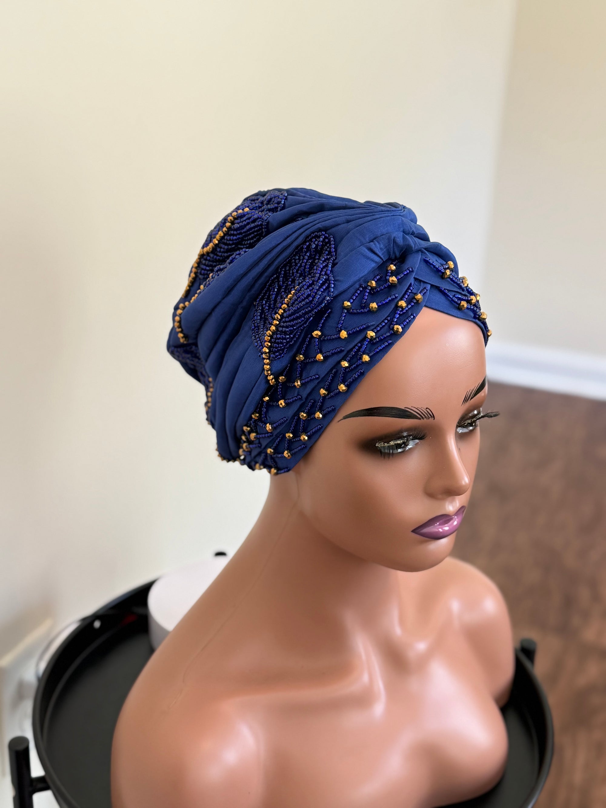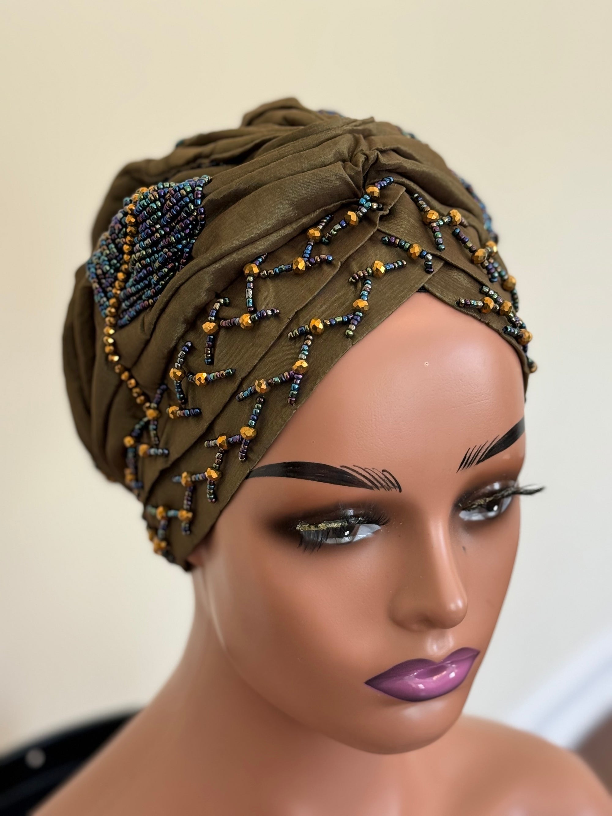 Luxury Beaded Turban with Gold finish Luxury Beaded Turban with Gold finish