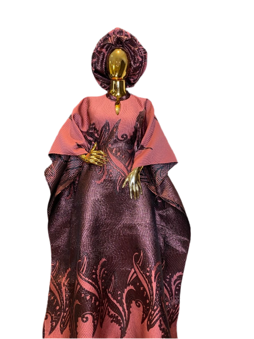 Ombre Brocade Bubu Dress | 62β Long African Kaftan with Inner Belt, Head Scarf, & Side Slits SaleOmbre Brocade Bubu Dress | 62β Long African Kaftan with Inner Belt, Head Scarf, & Side Slits