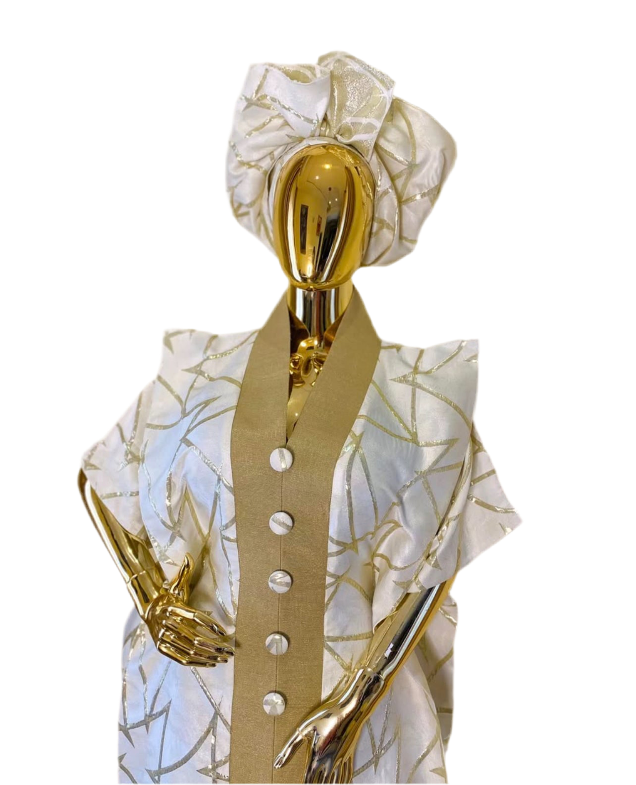 Luxury Black AndGold Brocade Asoke Bubu Dress β 3-Piece African Kaftan with Head Wrap & Braided Hair Band, 62β Long, Side Pockets, Inner Belt SaleLuxury Black AndGold Brocade Asoke Bubu Dress β 3-Piece African Kaftan with Head Wrap & Braided Hair Band, 62β Long, Side Pockets, Inner Belt