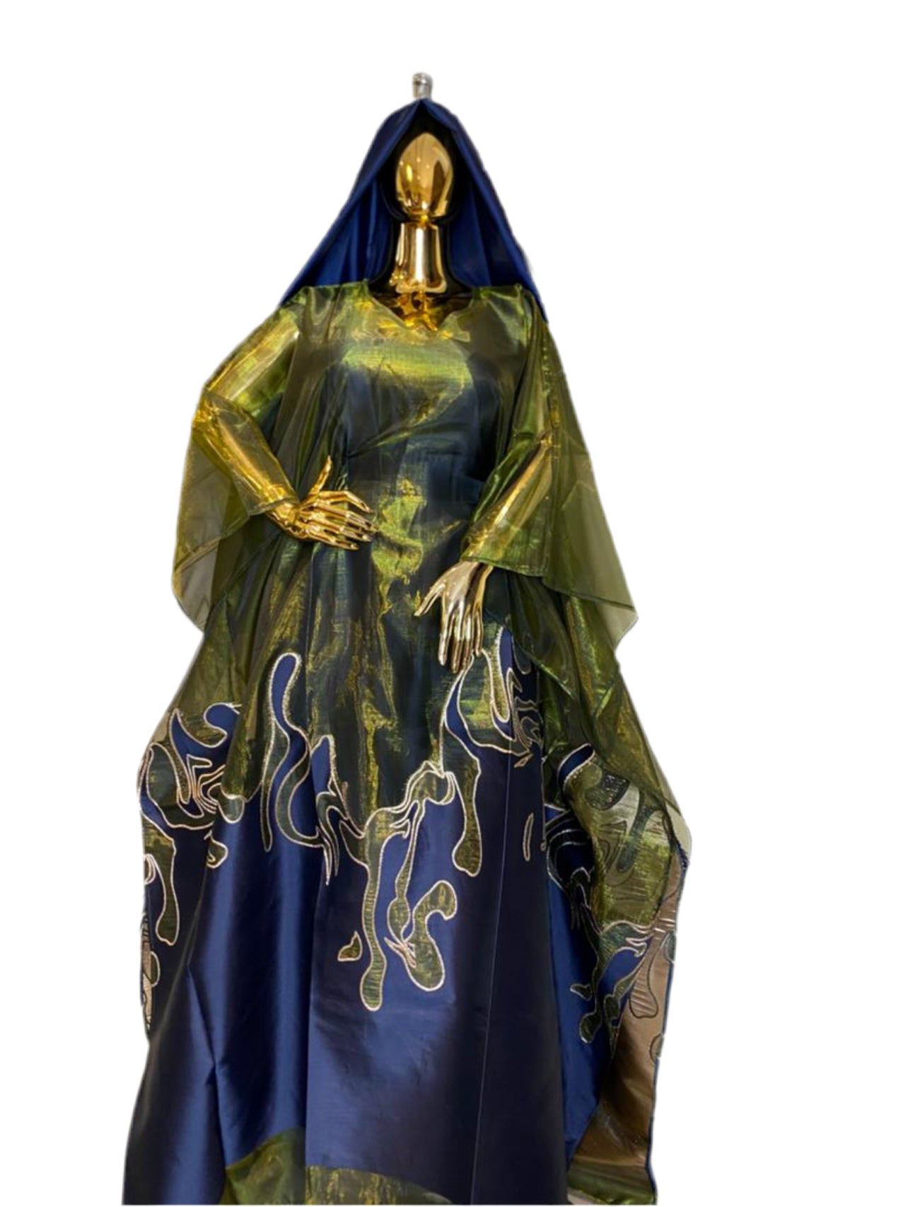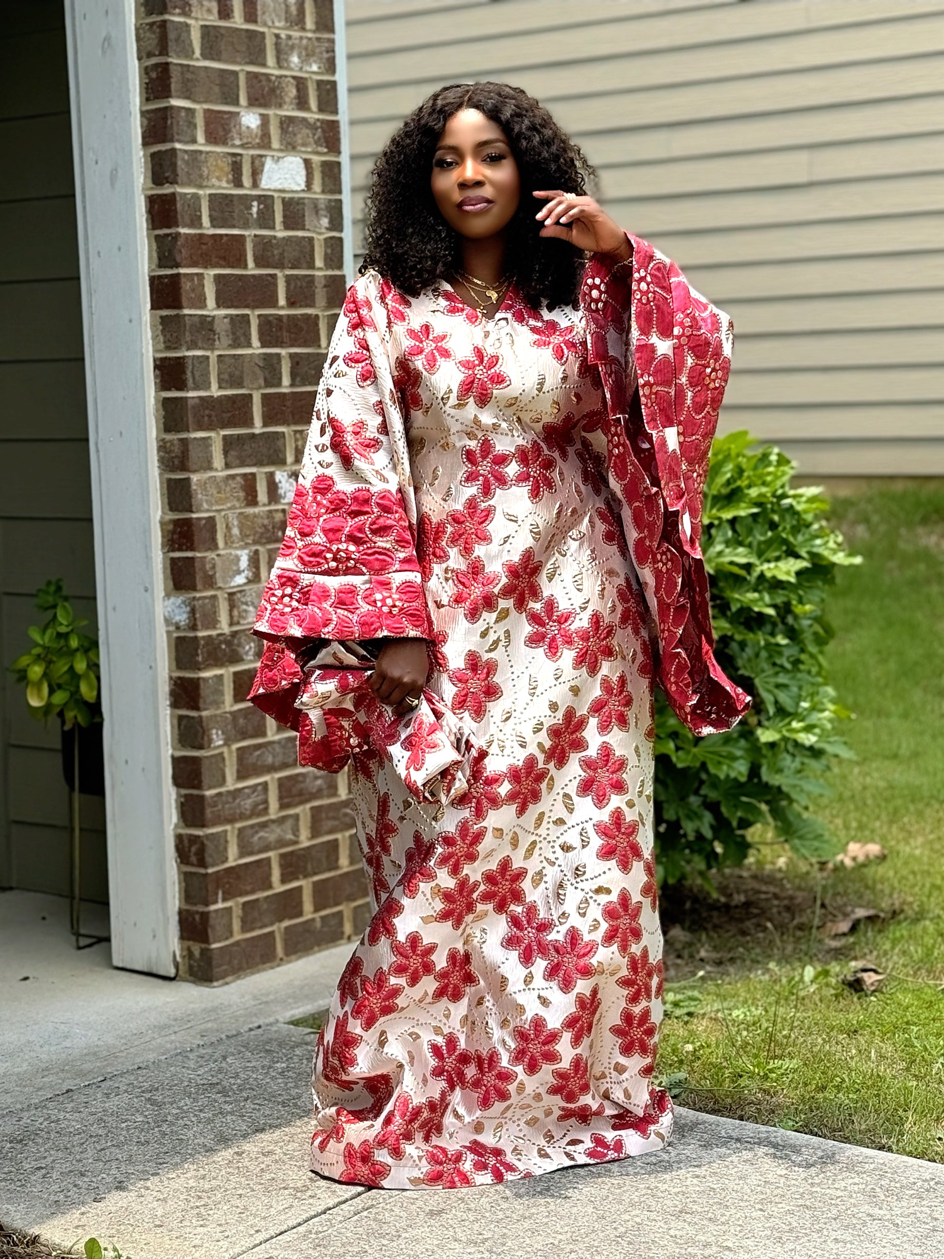 Brocade Bubu Set 62” Luxury Kaftan with Head Wrap & Inner Belt